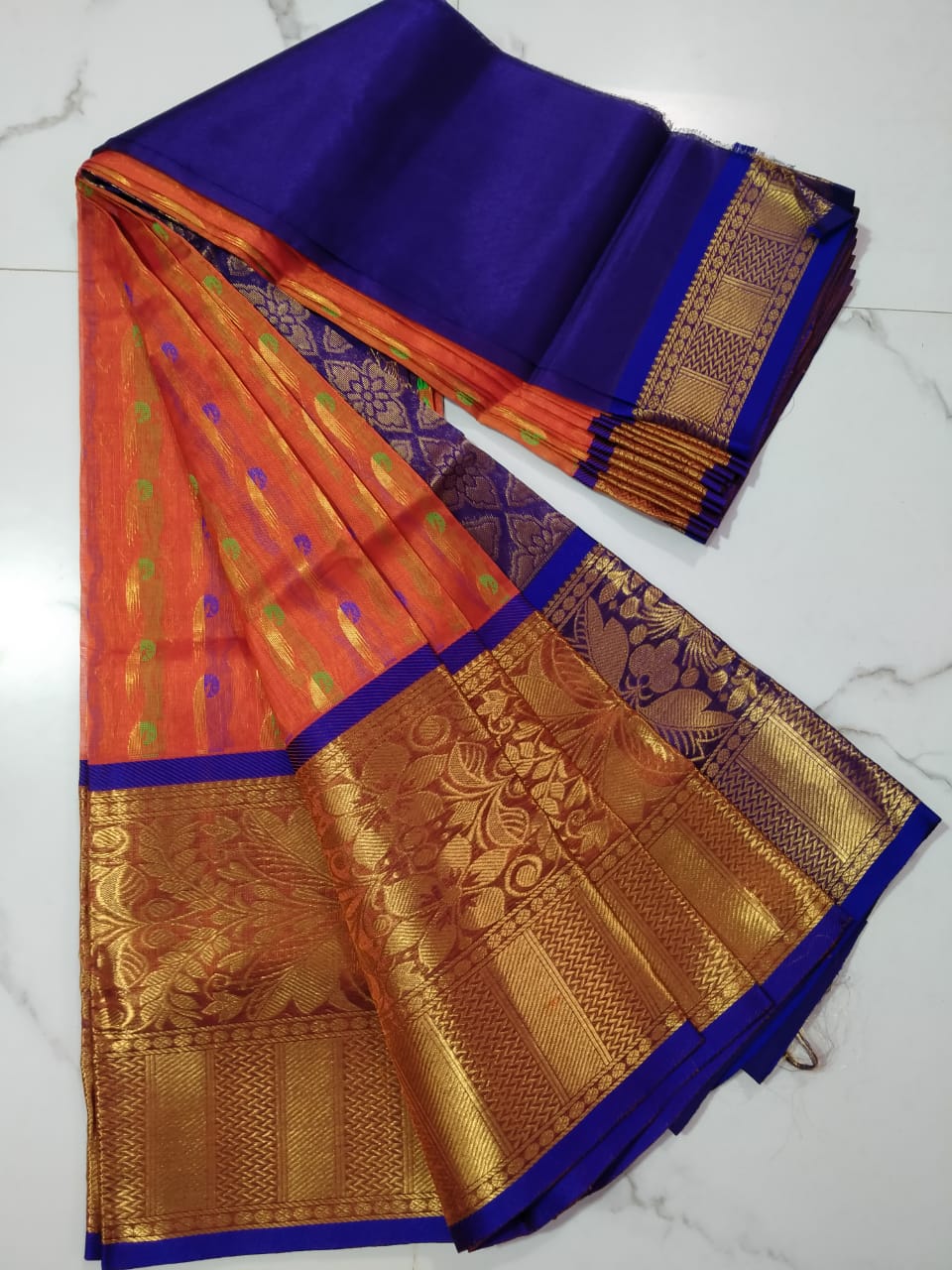 Handloom kuppadam pattu sarees with allover jarry worked and kuttu border sarees...